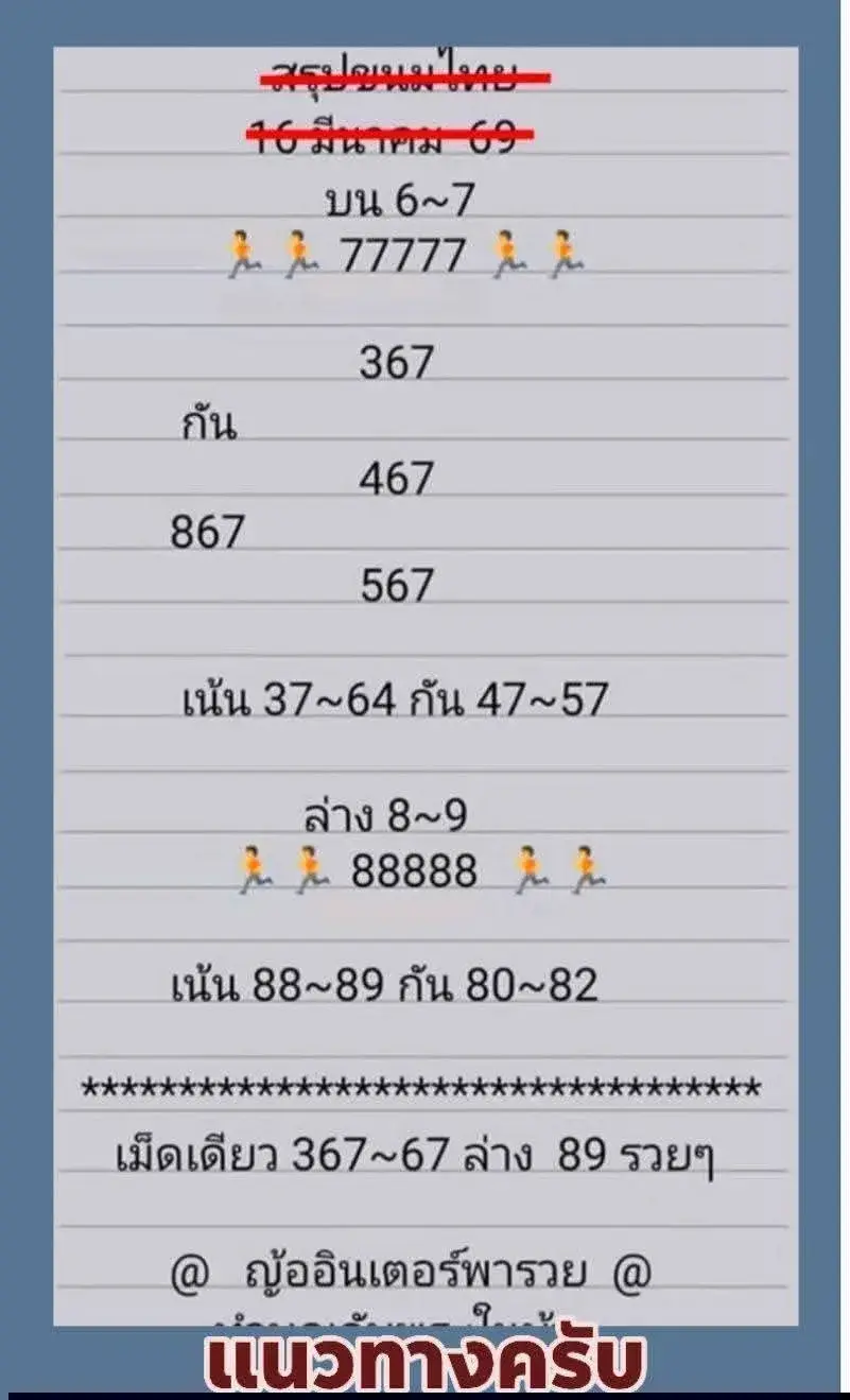 ส่องเลขแนวทางหวยรัฐบาล 16 มีนาคม 2569 หลุดโพยเด่นบน-ล่าง เน้นชุด 367 และ 9-8 คอหวยแห่จดก่อนวันออก
