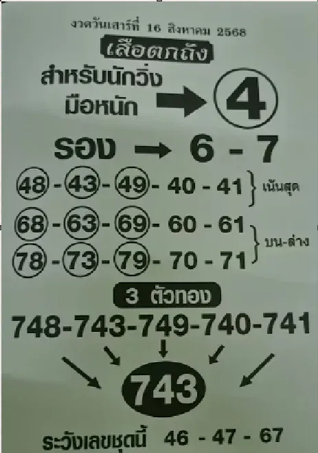 เลขเด็ด เสือตกถัง สูตร "อ.พล" งวดวันที่ 16/8/68 นี้ก็ได้ปล่อยทั้งเลขเด่น เลขดัง มาให้บรรดาคอหวยได้ไปพิจารณากัน สำหรับใช้เป็นแนวทางในการเสี่ยงโชคซื้อลอตเตอรี่ โดยงวดนี้มีเลขเด่น คือ 4 และรอง คือ 6 - 7 ส่วนตัวเลขในชุดอื่น ๆ ก็มีความน่าสนใจเป็นอย่างมาก สามารถไปดูที่ใบหวยด้านล่างกระทู้กันได้เลย