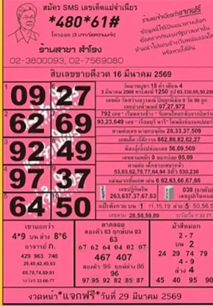 จะมีการขายดีเป็นลำดับต้นๆในเลขของแม่จำเนียร ซึ่งคอหวยต่างพากันตามหา 10 เลขขายดีและนำไปซื้อตามแผงลอตเตอรี่ซึ่งแม่จำเนียรได้มีการเผย 10 เลขเด็ดขายดีจนทำให้นักเสี่ยงโชคนำไปซื้อตามแผงเพื่อมีความหวังว่าจะถูกรางวัลลอตเตอรี่ 1 งวดวันที่ 16 มีนาคมนี้ ทั้งนี้ 10 อันดับเลขขายดีของแม่จำเนียรจะมีเลขอะไรกันบ้างนั้นไปรับชมกันได้ดังนี้ 09 62 92 97 64 27 69 49 37 50