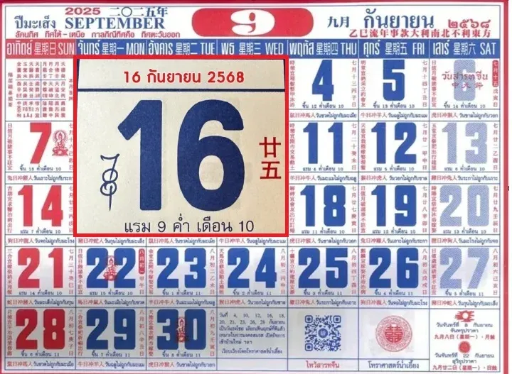 เลขเด็ดปฏิทินจีน งวดวันที่ 16/9/68