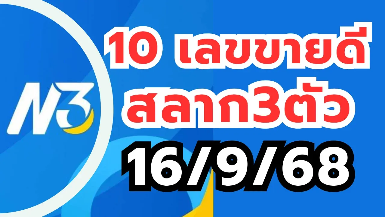 งวด 16 กันยายน 2568 มาตามดูกันต่อสำหรับ เลขขายดีสลากตัวเลขสามหลัก N3 งวด 16/9/68 งวดนี้มีตัวเลขอะไรบ้างที่มาแรงและขายดี 10 อันดับแรก