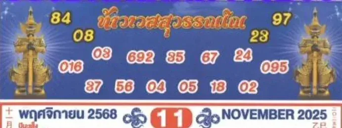 โดยแนวทางลอตเตอรี่ สำหรับ ‘ปฏิทินท้าวเวสสุวรรณโณ’ งวดวันที่ 16/11/68 มีดังนี้